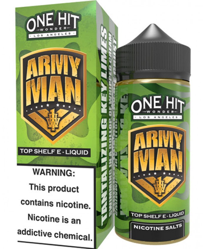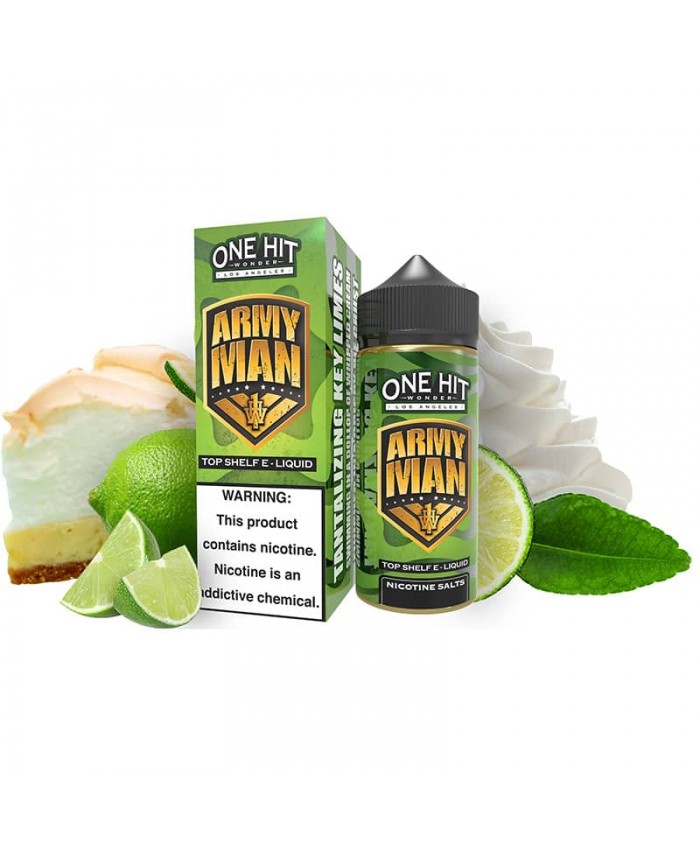 One Hit Wonder - Army Man 100mLKey Lime Pie80/20 VG/PG Ratio100% made in the USAMade with TruNic 2.0 Nicotine Salts..